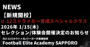 この度、FEA札幌サッカースクールでは、セレクションにより選抜された選手で構成されるプロサッカー選手養成クラス「U-7/U-9/U-10/U-12エリートアカデミークラス」の2025年度メンバー選考セレクションを開催します。
